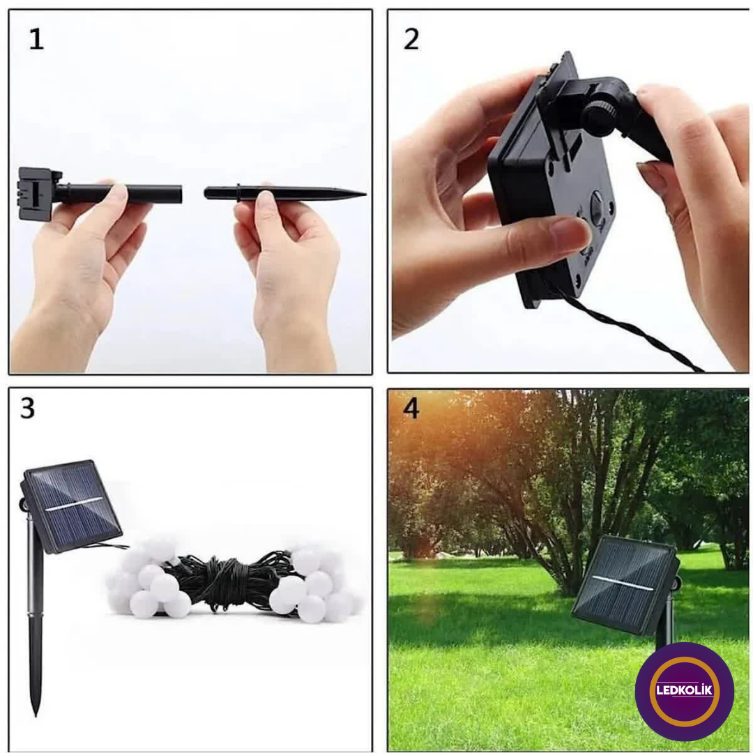 Bu ürün güneş enerjisiyle çalışmaktadır, bu sayede çevre dostudur ve ekonomiktir. Güneş ışığının yardımıyla şarj olan dahili pil, gece boyunca süsünüzün ışıklarının yanmasını sağlar. Bu sayede, elektrik faturalarından tasarruf ederken aynı zamanda çevreye de katkıda bulunabilirsiniz.