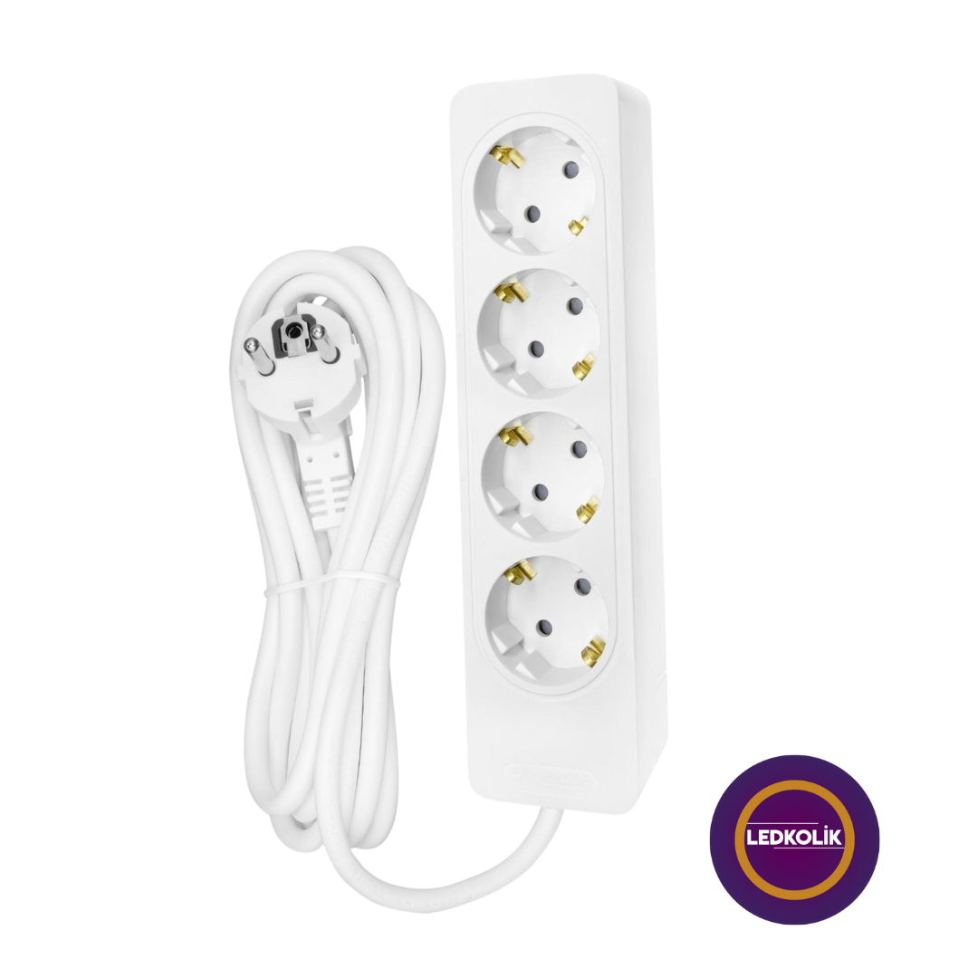 Dörtlü Topraklı Grup Priz - 3 Metre, güvenli, şık ve kullanışlı yapısıyla elektrik ihtiyacınızı karşılamak için mükemmel bir tercihtir. Kaliteli malzeme yapısı ve pratik kullanım özellikleri ile tüm cihazlarınıza kesintisiz güç sağlar. Elektrik bağlantılarınızı güvenle yaparken, estetik bir dokunuş da eklemek istiyorsanız, bu ürün tam size göre!