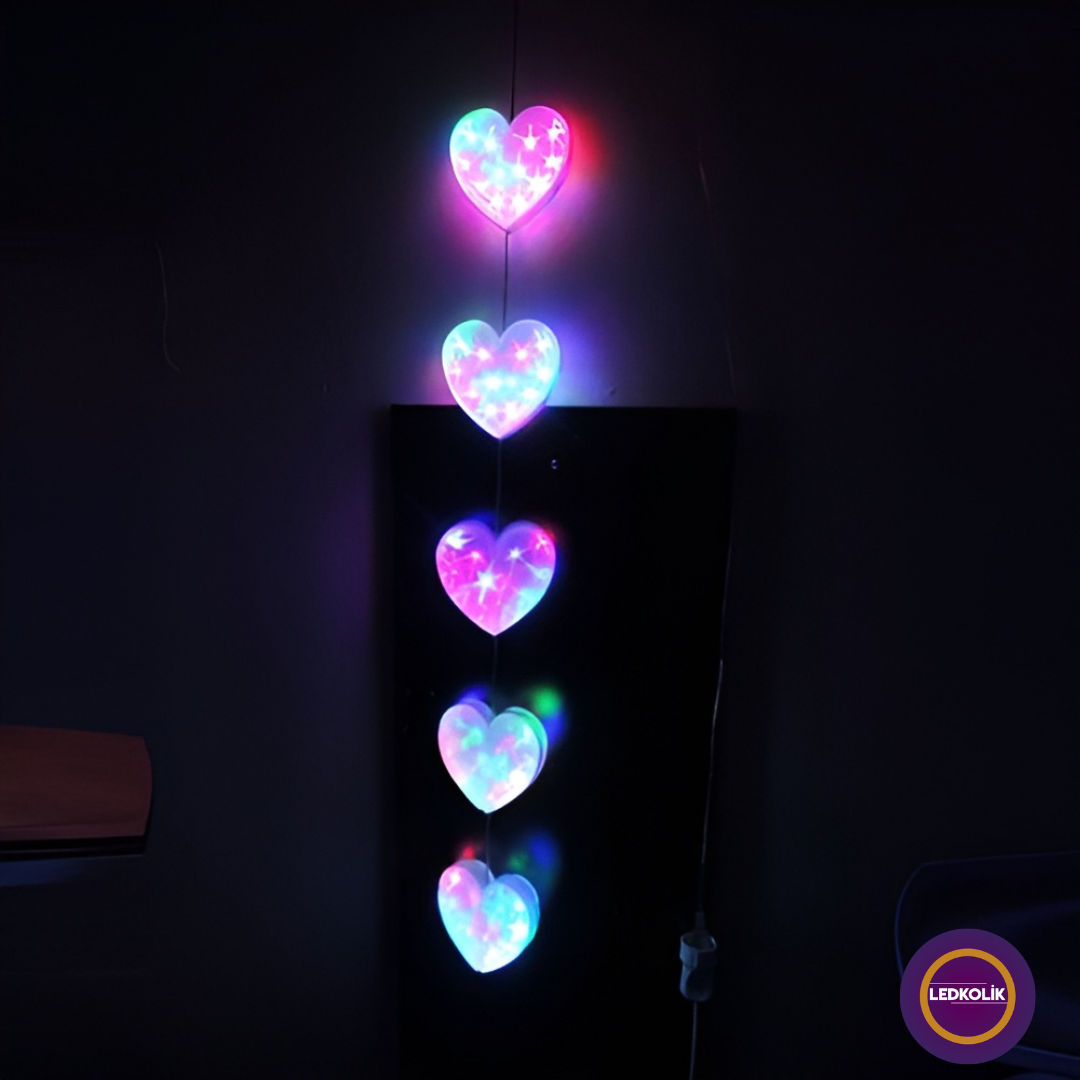 Yılbaşı ruhunu evinizin her köşesine taşıyacak olan bu ışık süsü, kalp şeklindeki tasarımı ve canlı renkleri ile dikkatleri üzerine çekmektedir. Her bir kalp, animasyonlu LED ışıklar ile donatılmıştır ve bu sayede dinamik bir görüntü sunmaktadır. Ürünün renkli LED ışıkları, seçtiğiniz canlı renklere ayarlanabilmekte ve böylelikle sizin istediğiniz dekorasyon tarzına uyum sağlamaktadır.